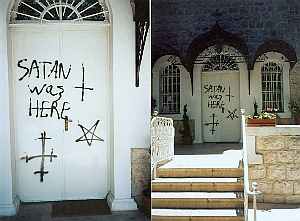 Тотчас по обнаружении богохульных изображений и надписаний была вызвана полиция и составлен протокол. После того, как полицейские удалились, в дом при храме позвонил по телефону неизвестный, который взял на себя ответственность за совершенное преступление и высказал угрозу впредь продолжать подобные действия. Неизвестный злоумышленник говорил по-русски.